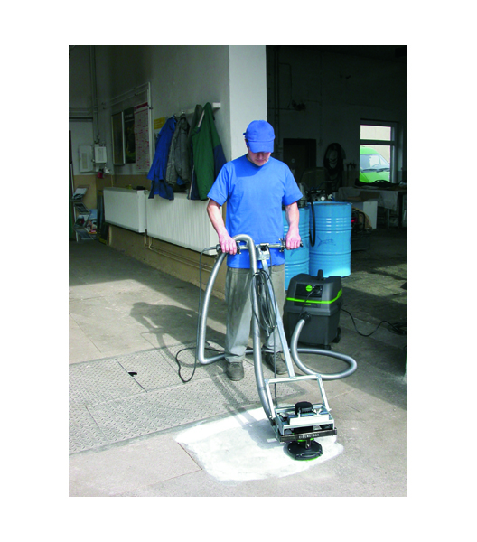 Betonslijper voor het slijpen en gladmaken van oneffenheden in beton en het verwijderen van bekistingsnaden, stuc- en pleisterlagen, lijmresten (tegellijm) etc. Uitgevoerd met twee parallel geplaatste handgrepen met trillingsdemping. Het voorste deel van de stofkap is opklapbaar waardoor er ook vlak lang de wand gewerkt kan worden. Met langzaam-aanloopschakelaar, thermische- en overbelastingsbeveiliging en aansluiting voor industriestofzuiger. Inclusief diamantschijf B125 voor beton, verpakt in metalen koffer.